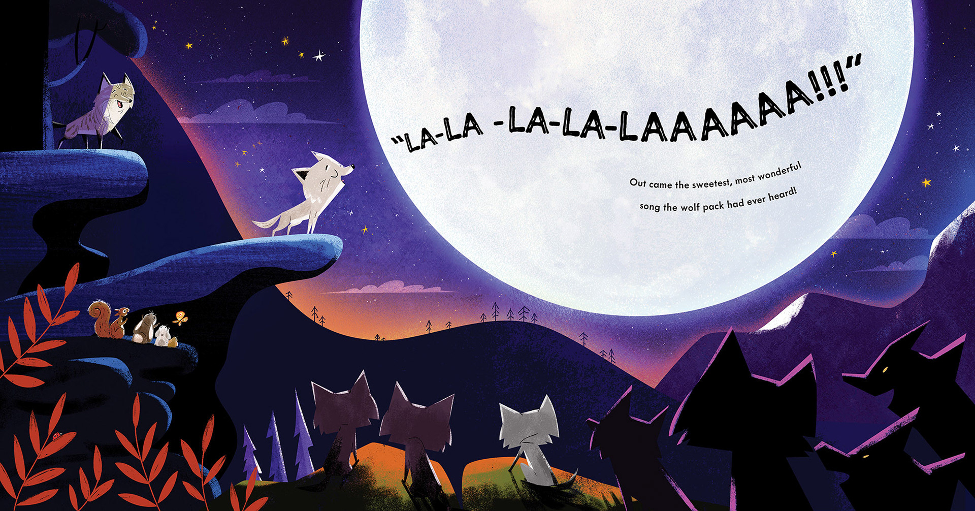 Little Wolf is an empowering and inspirational tale of a young wolf’s quest to overcome his fear and express himself in song. Little Wolf despairs of ever being heard amidst the noisy barks and growls of his fellow pups during the Big Howling Ceremony. Will his inability to howl exclude him from the pack?