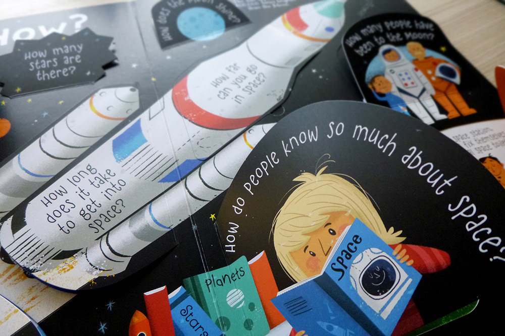 With over 60 flaps to lift, this delightful book answers questions such as "Where have people visited in space?", "What's a cosmonaut?", "Why can't I see stars in daytime?" and lots more what, where, how, why, and yes or no questions with answers beneath the flaps.