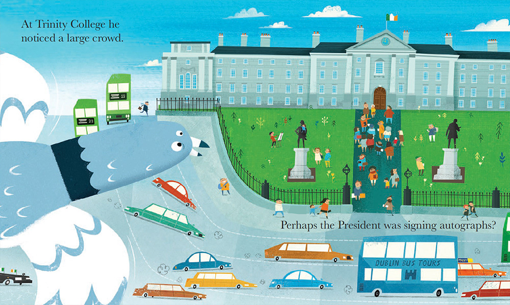 This handsome hardback is beautifully crafted with vibrant illustrations and a cracking story that will make you smile. The President of Ireland (who with his dapper suit, bow tie and glasses bears a striking resemblance) is on his away across Dublin city to sign a very important document but he’s forgotten his glasses. Luckily the President’s pigeon is on hand to save the day. It’s hard to believe this is Donnelly’s first picturebook, it’s full of confidence and visual swagger and would make the perfect present to send to Irish families living around the globe. - Sarah Webb